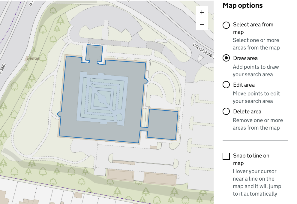 - investigating methods for selecting features or drawing a boundary, for example, using Web Feature Services (WFS) and selecting a feature at the centre of the map